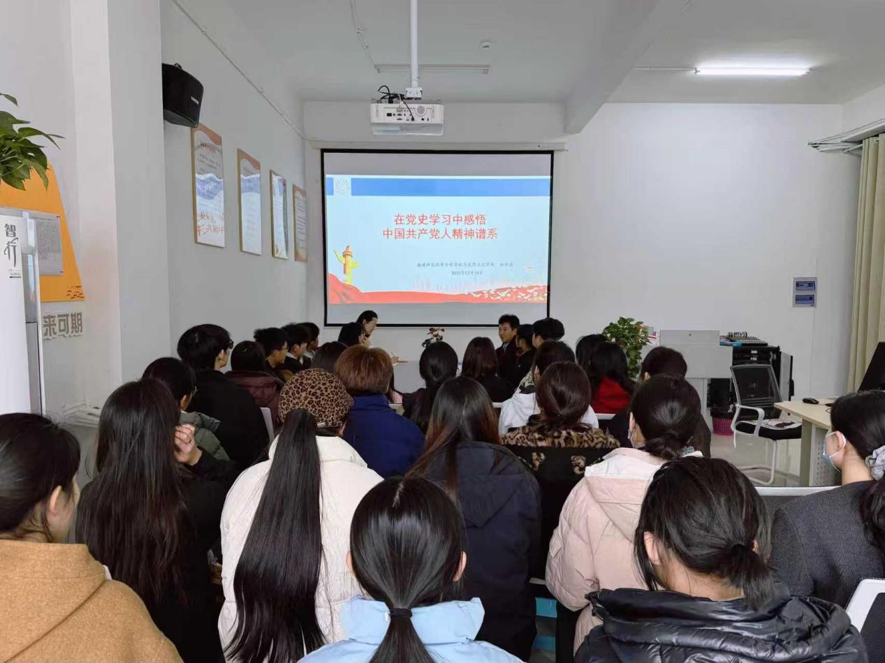 12月10日下午,马克思主义学院党总支书记、院长孙红兵走进开发区校区“一站式”学生社区,在辅导员联合工作站面向全校40余名师生代表开展“在党史学习中感悟中国共产党人精神谱系”理论宣讲。