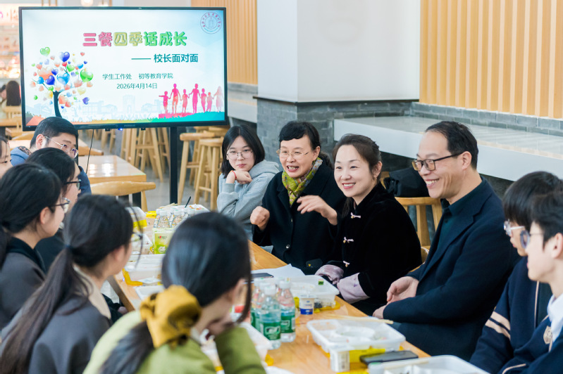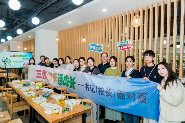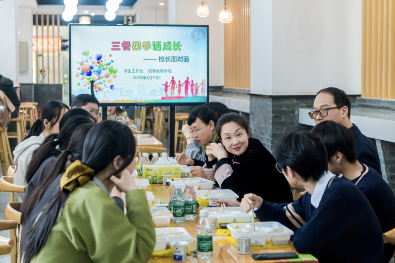 4月14日,由学生工作处、初等教育学院联合举办的三餐四季话成长·校长面对面第一期活动,在开发区校区尚俭楼一楼食堂顺利开展。校党委委员、副校长赵园园与师生代表围坐一桌,边用餐边亲切交流,在轻松的氛围中倾听同学心声,共话成长发展。