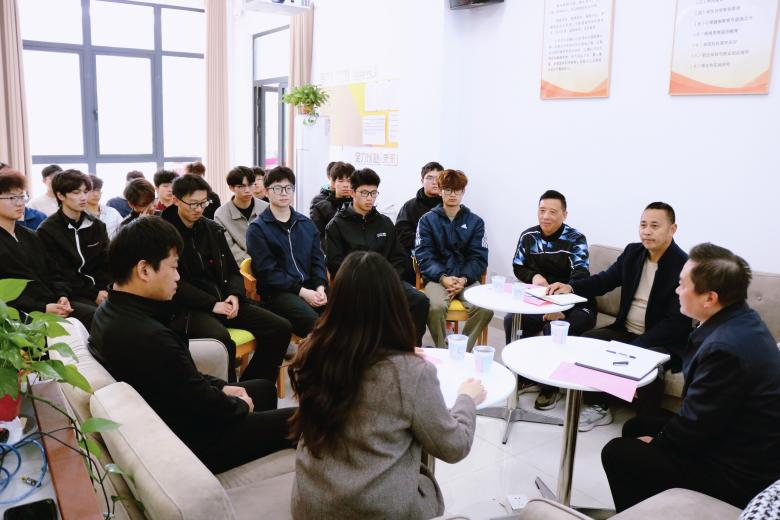 活动以茶话会形式开启,聚焦体育设施、饮食健康、就业、征兵等男生普遍关心的热点话题进行深入交流。王鑫明书记结合十年学生工作经历,分享育人心得与感悟,耐心倾听同学们心声、细致回应,现场氛围真诚热烈。学生代表踊跃提问、建言献策,校领导与老师们逐一答疑解惑、务实回应,真正做到件件有落实、声声有回响。