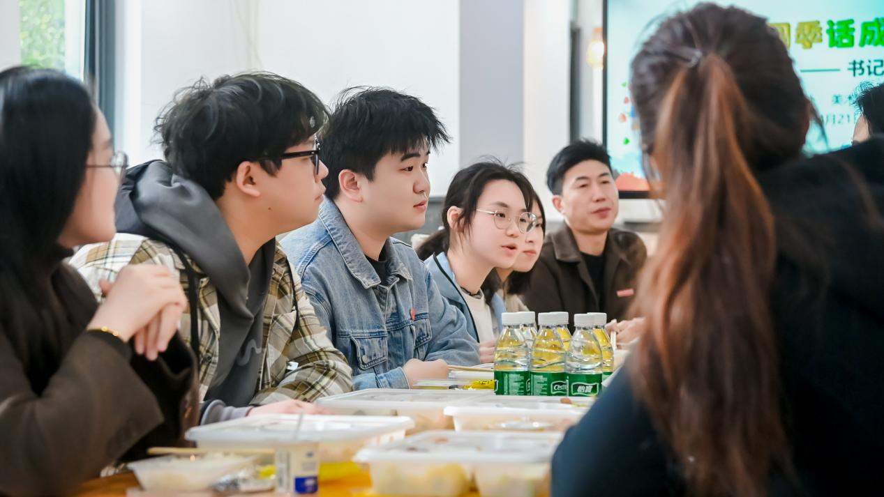 活动现场,师生们围桌就餐、亲切交流。陈玉君书记认真倾听同学们在学习生活、专业发展、校园服务等方面的所思所盼,细致询问大家在日常学习、食宿保障、心理状态等方面的实际需求,对同学们提出的问题与建议逐一耐心回应、悉心解答。